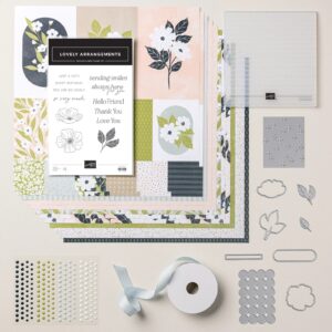 This card is filled with texture since it uses the Lovely Stripes 3D Embossing Folder (Online Exclusive 167179) to add texture to the soft Cloud Cover background. It adds interest using the Lovely Blossoms Designer Series Paper (Online Exclusive 167168) and Lovely Arrangements Dies (Online Exclusive 167175). This die set has some wonderful textures and shapes along with a fun label you’ll reach for again and again due to their versatility.
